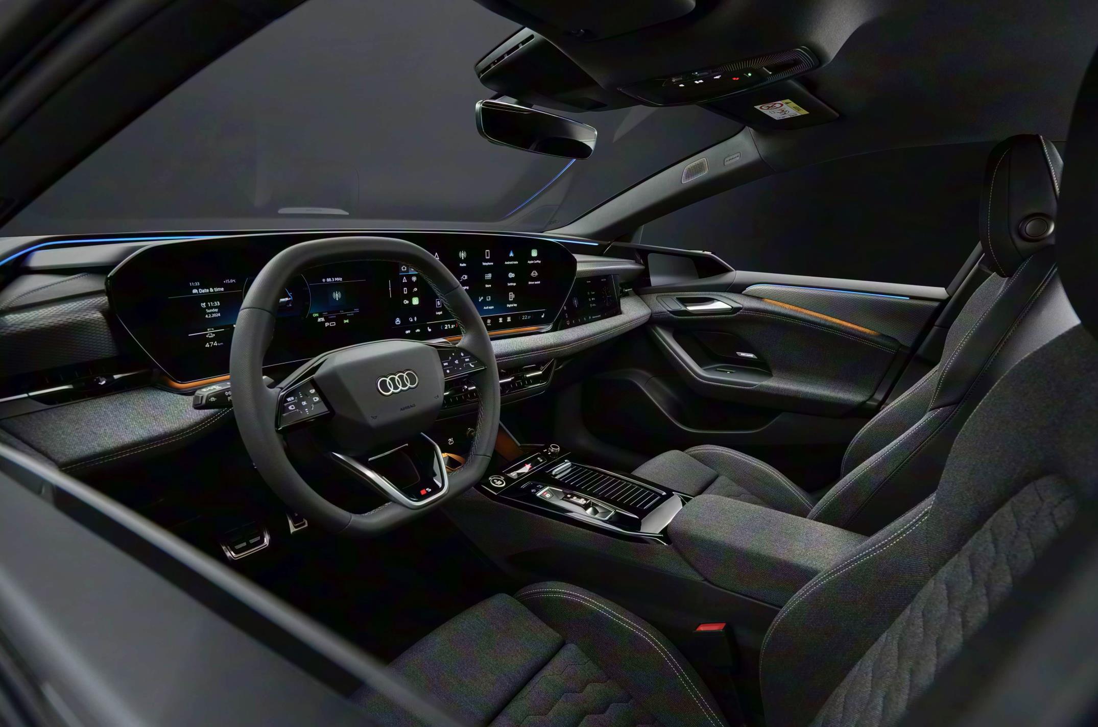 奥迪A6 Avant e-tron搭载了奥迪汽车最新的虚拟座舱系统,配备了11.9英寸全液晶仪表盘、14.5英寸中控屏、10.9英寸副驾驶娱乐屏以及AR-HUD增强现实抬头显示,搭载了奥迪最新的MMI系统,支持CarPlay、Android Auto无线连接。车内配备了真皮沙发座椅,内部填充物有可回收材质制成,符合当下绿色环保趋势。功能上支持加热、通风、按摩功能,即便是跑长途也拥有更加舒适的乘坐体验。
