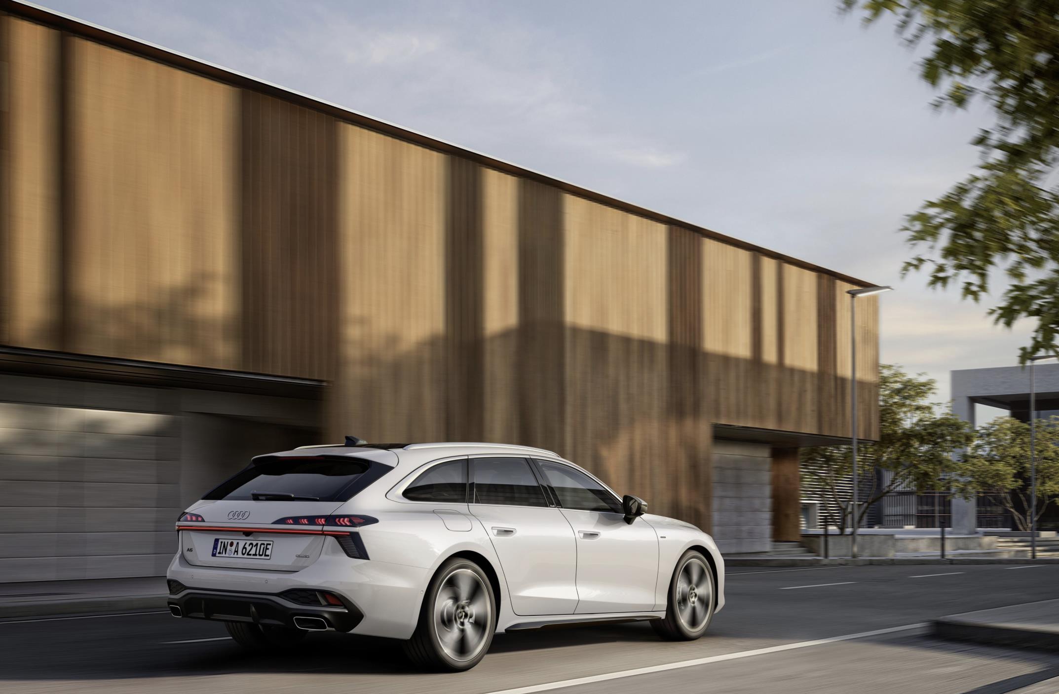 奥迪A6 Avant e-tron车身将旅行车与轿跑车型的优势完美的整合在一起,给人的感觉更加舒展、流畅。弧线形的车顶一直延伸至车尾末端,车顶上配备银色饰板点缀,进一步突显顶部的流线设计,灵动的侧面线条给人一种若隐若现的感觉。四个隐藏式的门把手、无边框车门、21英寸的半封闭式轮圈匹配了275/35 R21、275/30 R21规格的轮胎、大尺寸刹车卡钳和高性能Brembo刹车卡钳,也营造出极强的运动氛围。尺寸方面,车身的长宽高分别为4951*1902*1504mm,车身轴距2950mm,不仅带来了更加宽敞舒适的驾乘空间感,也拥有更加出色的储物空间表现。